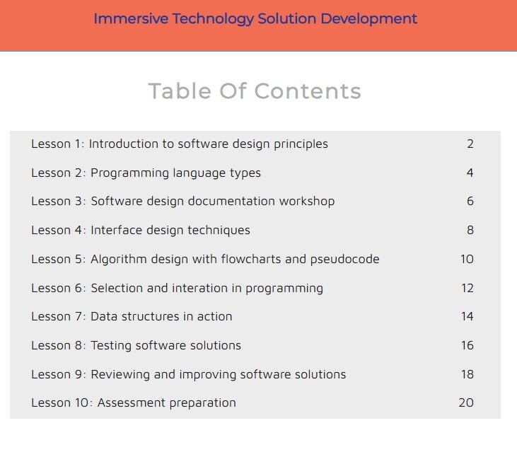 A series of lesson plans for the teaching of software development